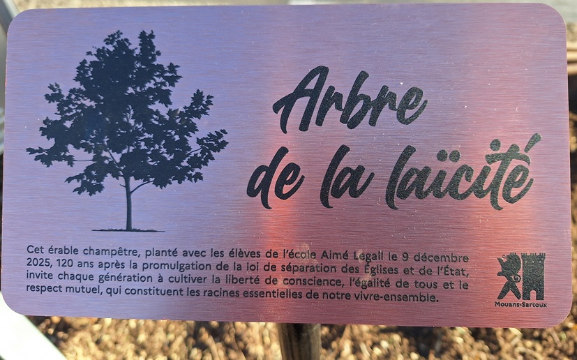 Dix ans après une première plantation, la commune de Mouans-Sartoux (Alpes-Maritimes) a célébré le 120ème anniversaire de la Loi de Séparation des Églises et de l’État par la plantation d’un deuxième arbre en présence des enfants des écoles. L’ADLPF était invitée !